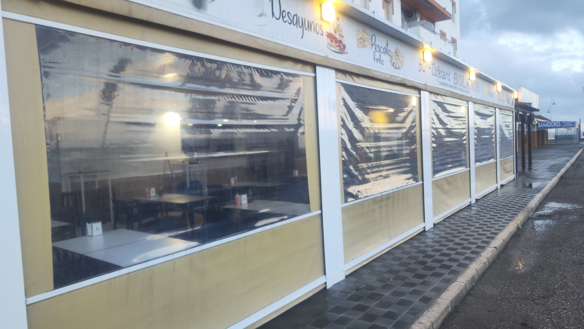 Toldos Cortavientos, es un modelo toldo muy habitual para cerramientos de terrazas en hostelería principalmente para rescuardarse de las inclemencias del tiempo.